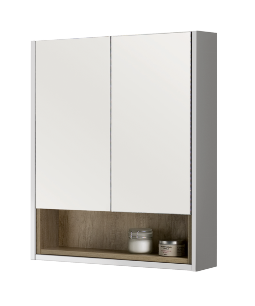 A mirrored bathroom cabinet is a dual-purpose fixture that combines storage with a mirror. Typically installed above a vanity or sink area, it provides convenient storage space for toiletries, medications, and other bathroom essentials while also serving as a functional mirror for grooming tasks. These cabinets come in various styles, sizes, and designs, with options for single or multiple doors and integrated lighting features. Mirrored bathroom cabinets help maximize space in smaller bathrooms while adding functionality and enhancing the overall aesthetic appeal of the space.